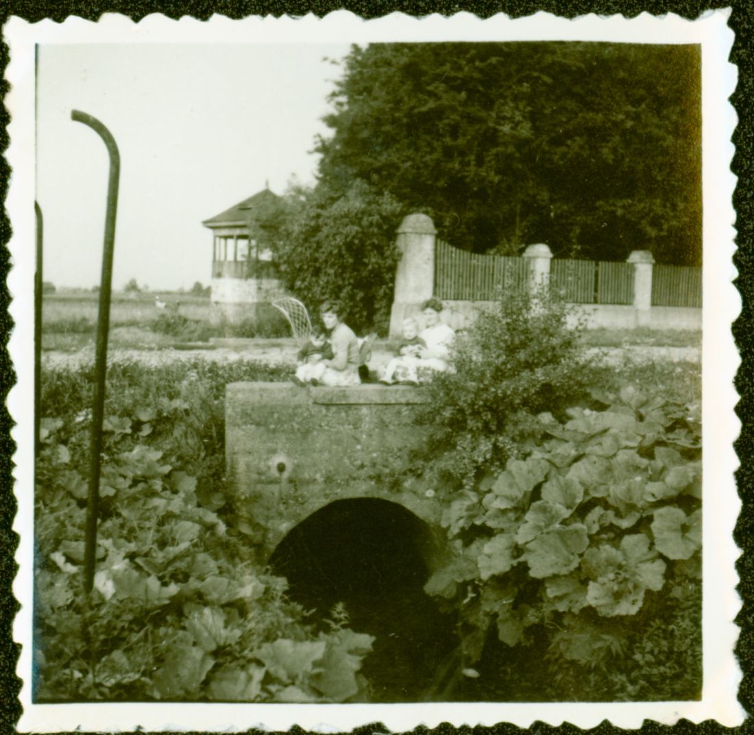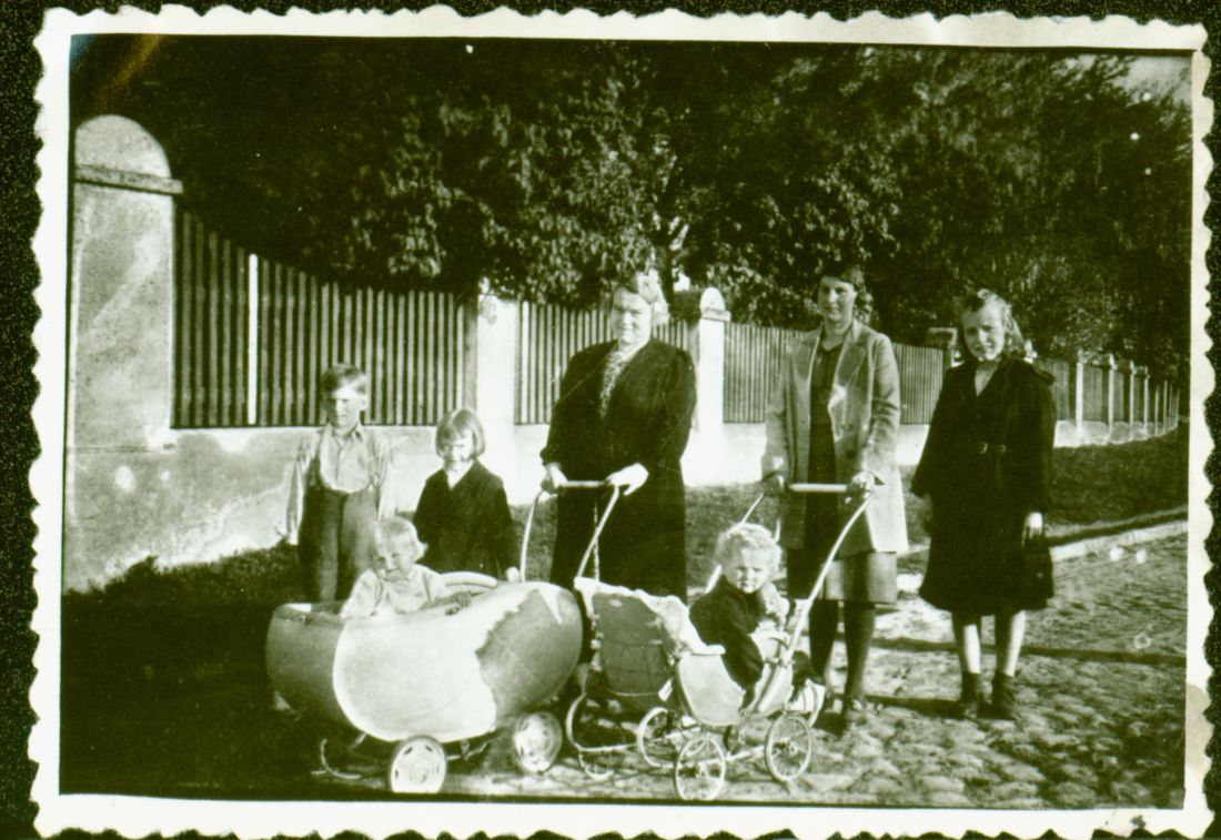 Pani Rodewald z dziećmi za cukrownią rodzina ewakuowana z Berlina przed bombardowaniami