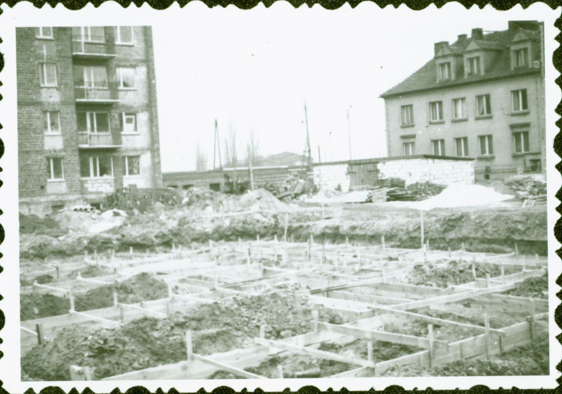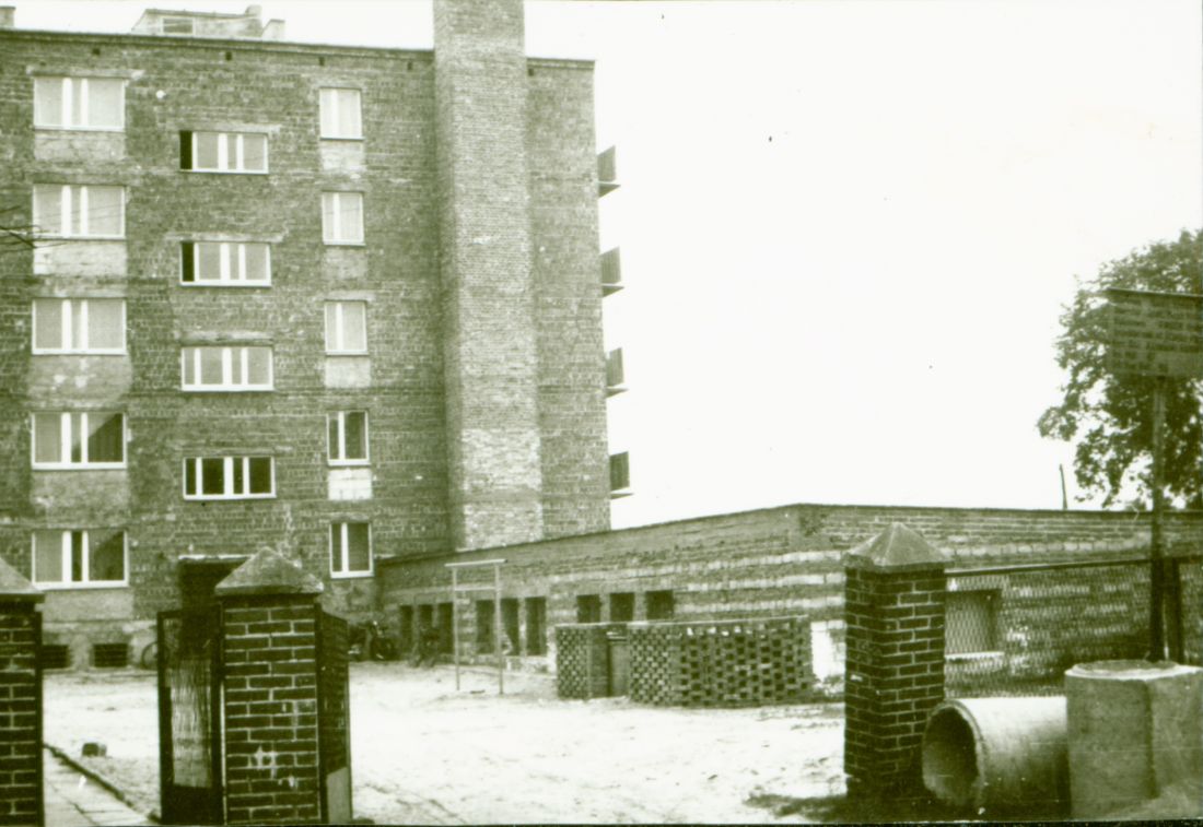 Budowa nowych bloków mieszkalnych obok hotelu robotniczego i bloku mieszkalnego cukrowni