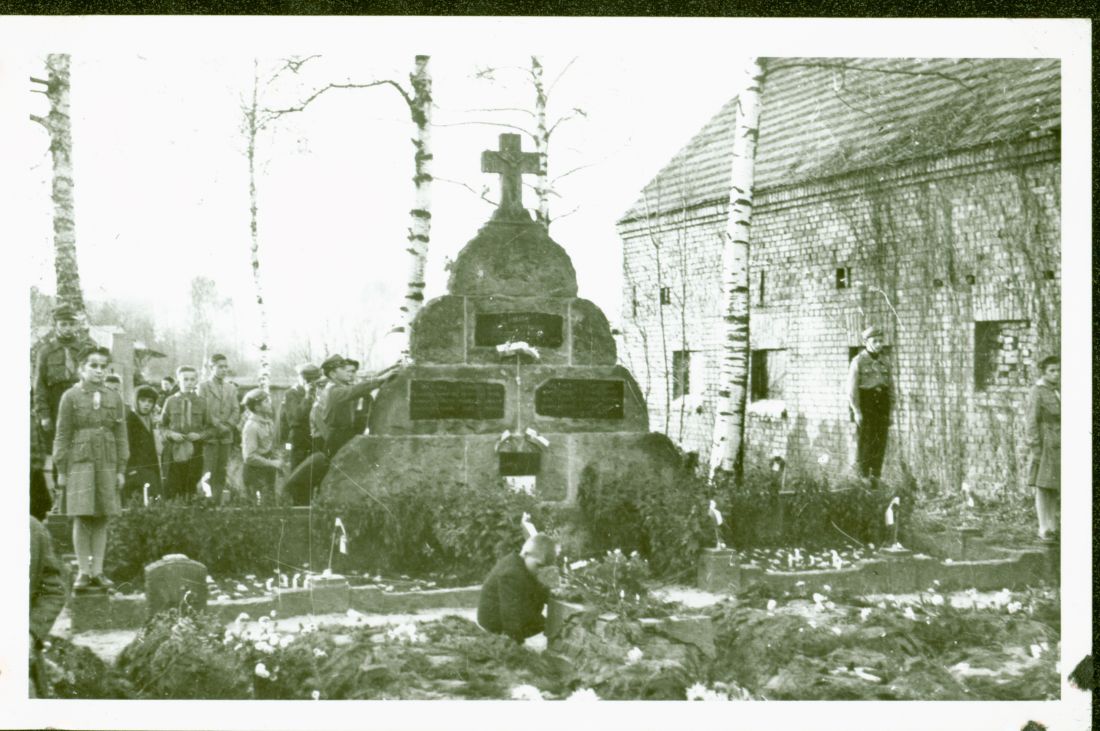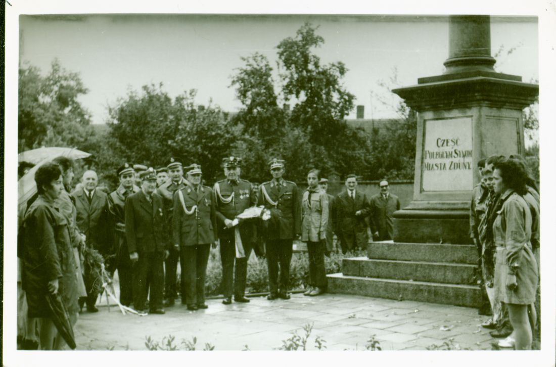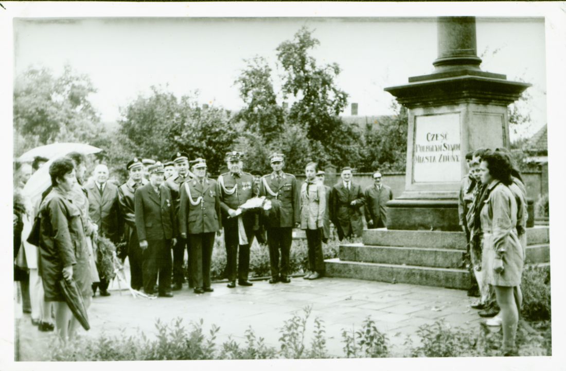 Składanie wiązanek kwiatów przed pomnikiem na placu 700-lecia
