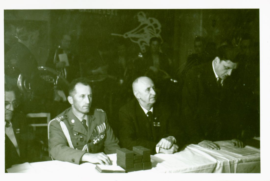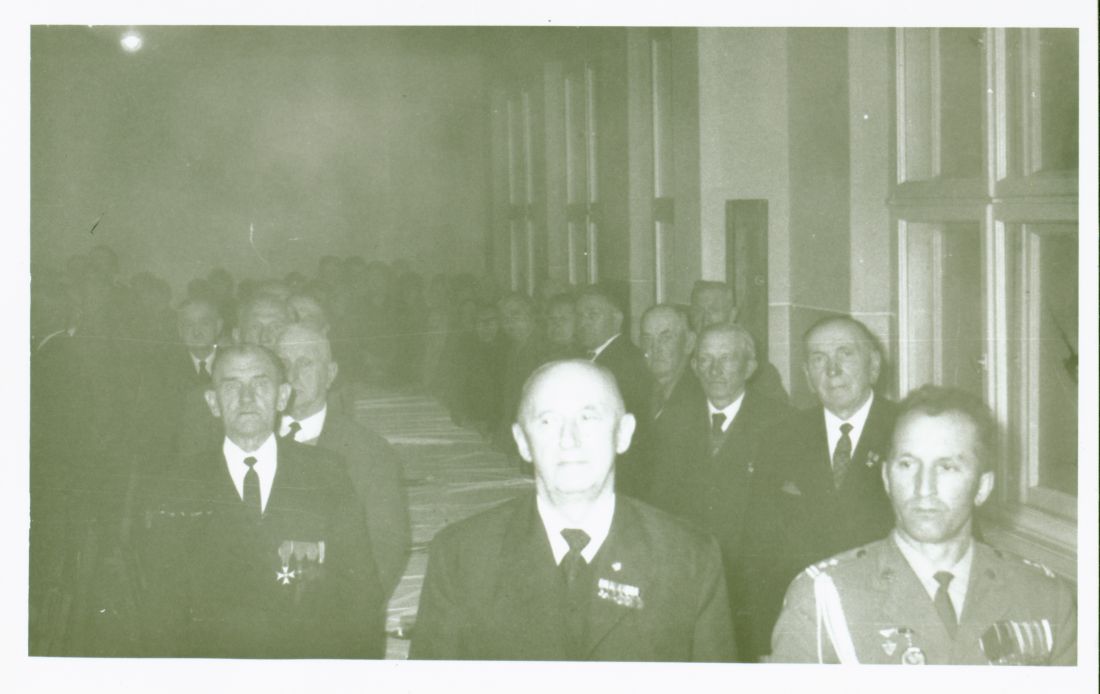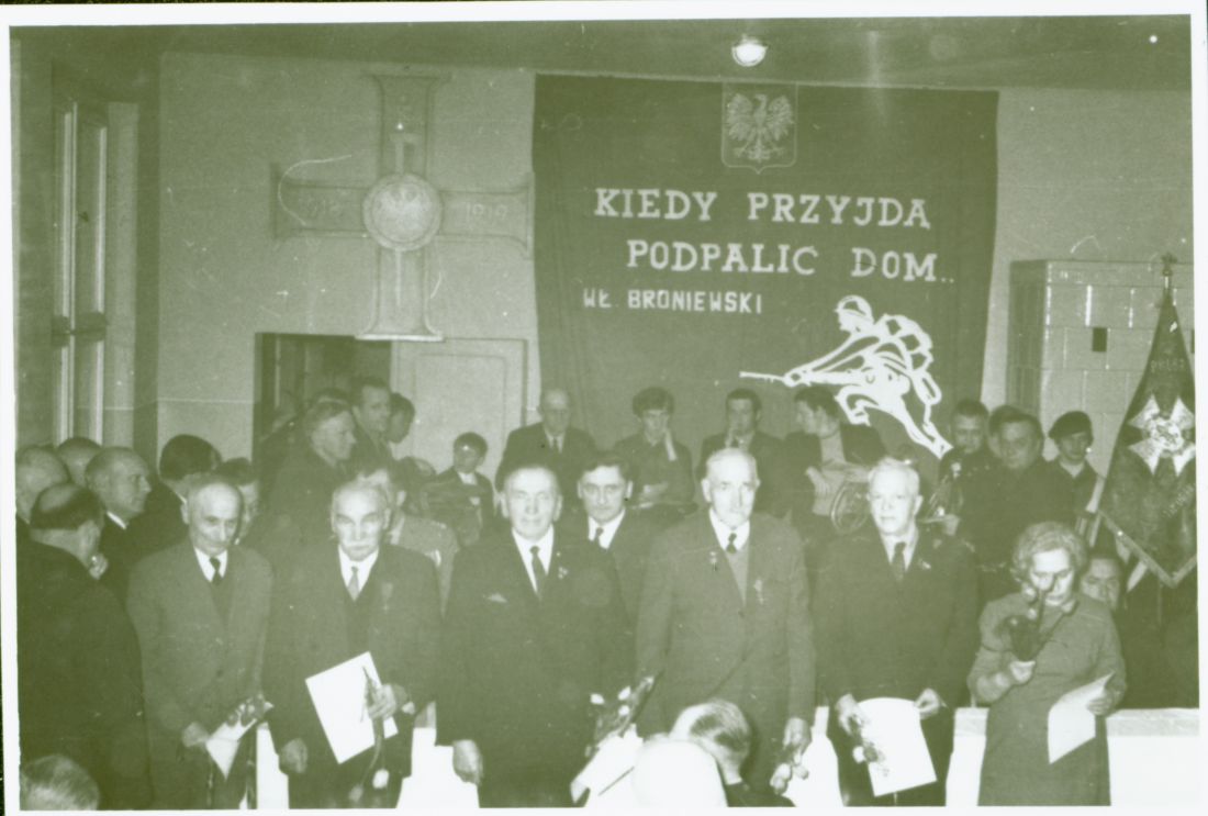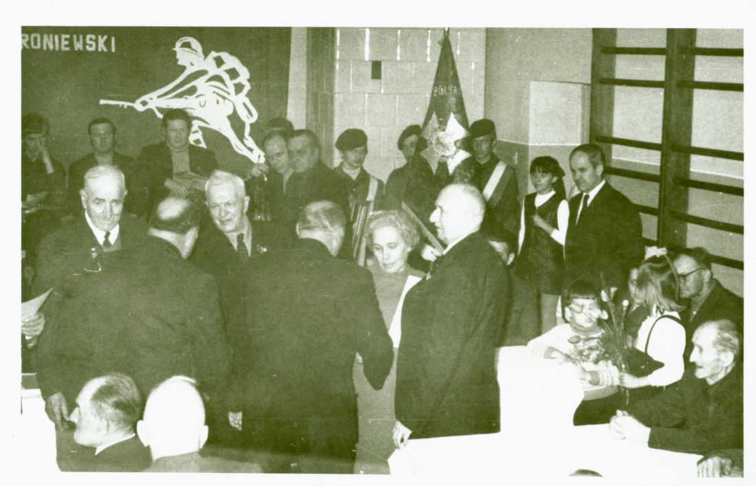Uroczystość nadania nominacji oficerskich powstańcom wielkopolskim. Wręczenie medali zasługi zasłużonym w walkach o Berlin. SP Zduny maj 1972
