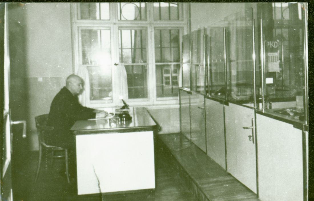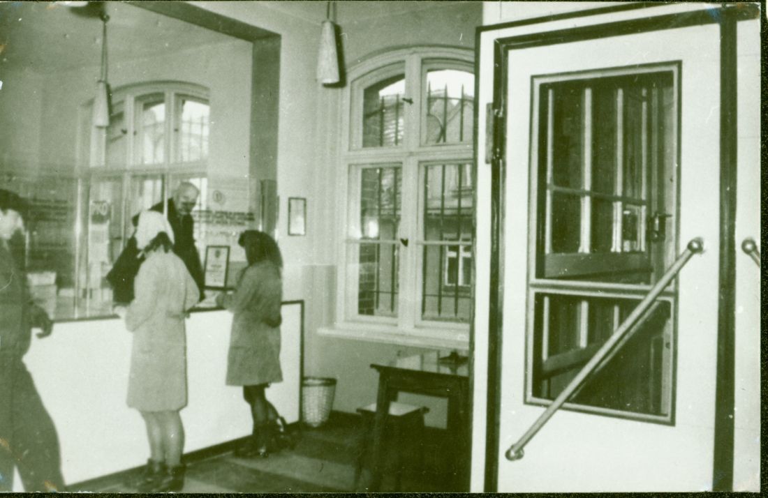 Zmodernizowane po wyzwoleniu wnętrze urzędu pocztowo-telekominikacyjnego Stanisaw Kuras naczelnik'