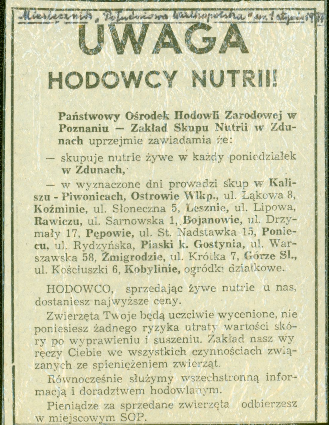 Hodowanie Nutrii i skup 29.10.1973
