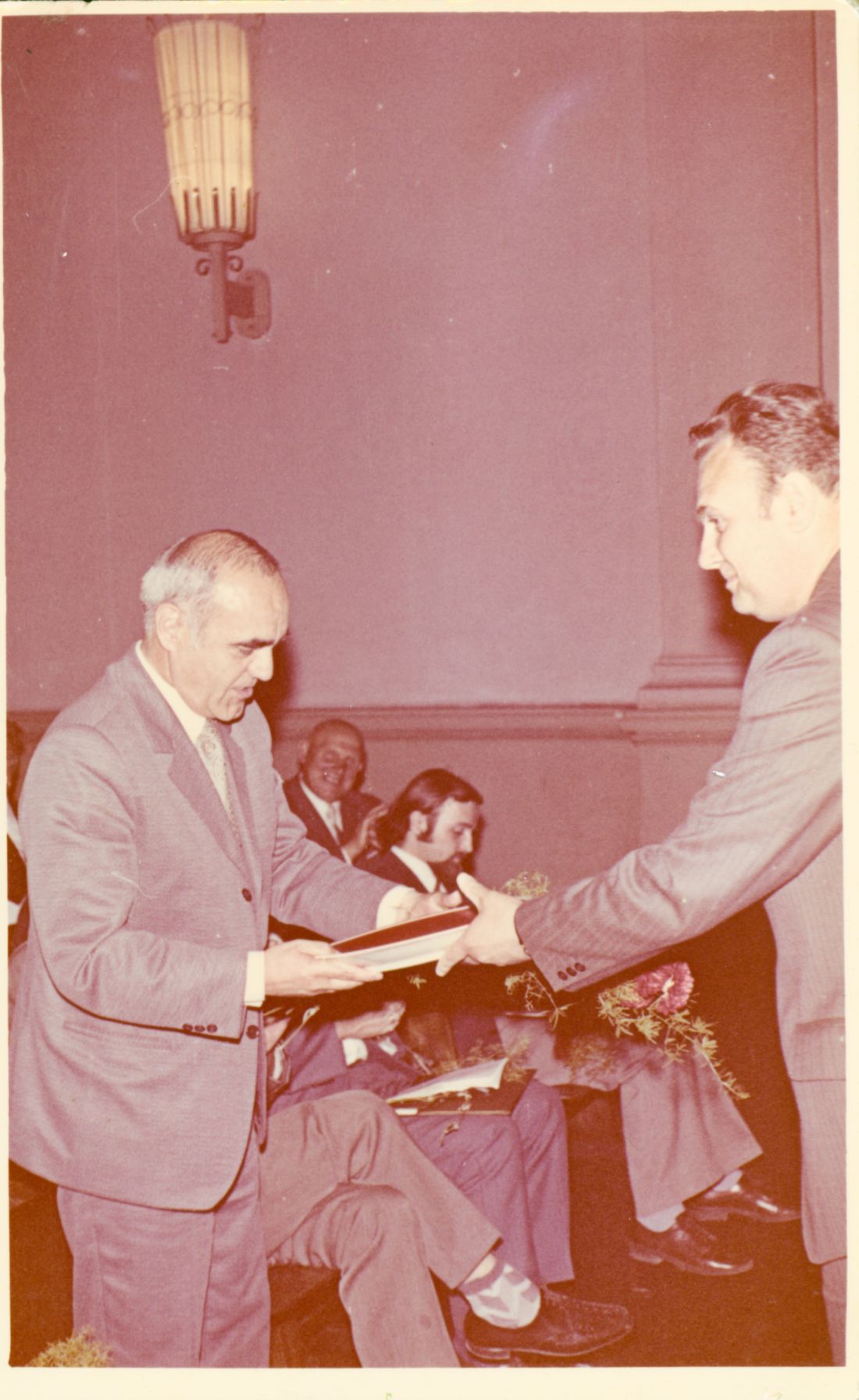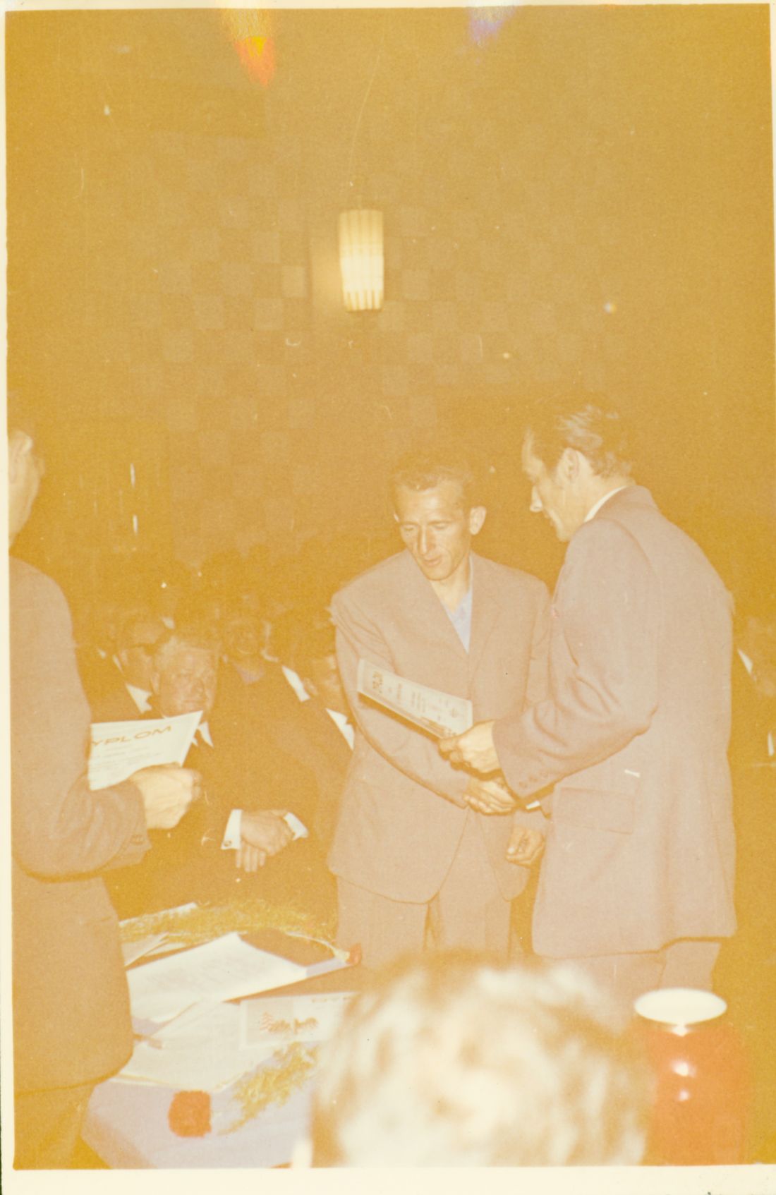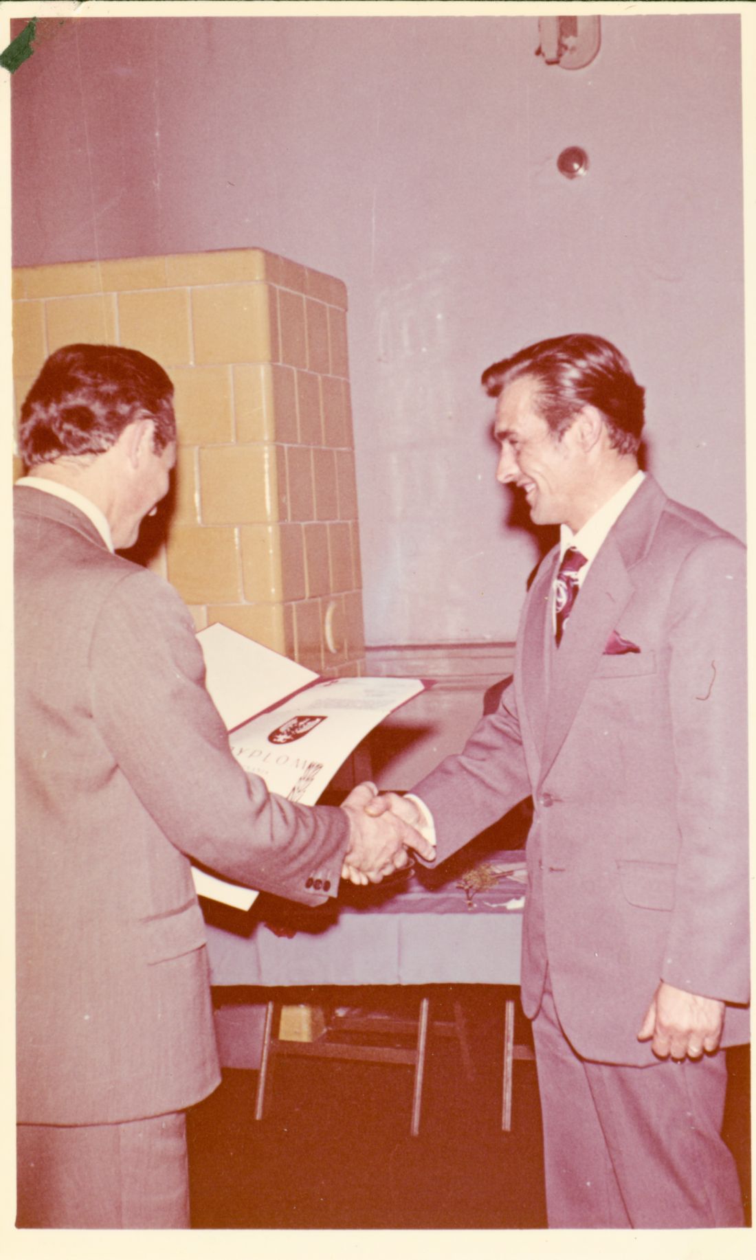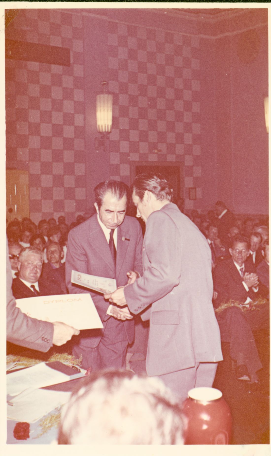 inż Uciechowski wręcza dyplom kierownikowi Międzykółkowej Bazy Maszynowej w Zdunach Bolesławowi Smolce