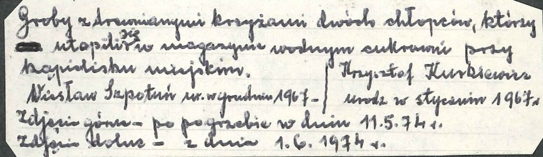 groby dwóch chłopców, którzy utopili się na magazynie wodnym cukrowni przy kąpielisku miejskim