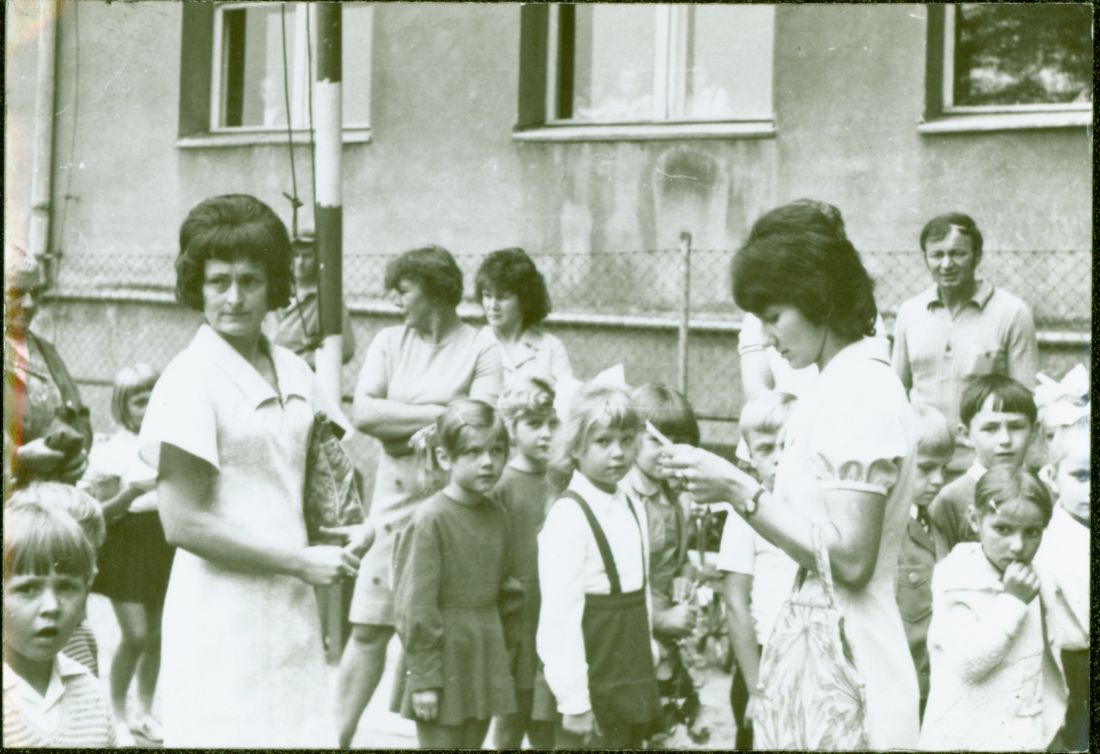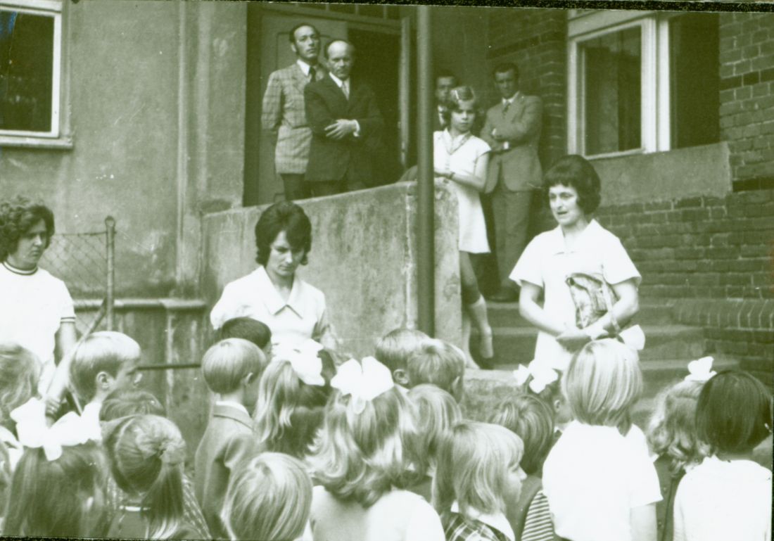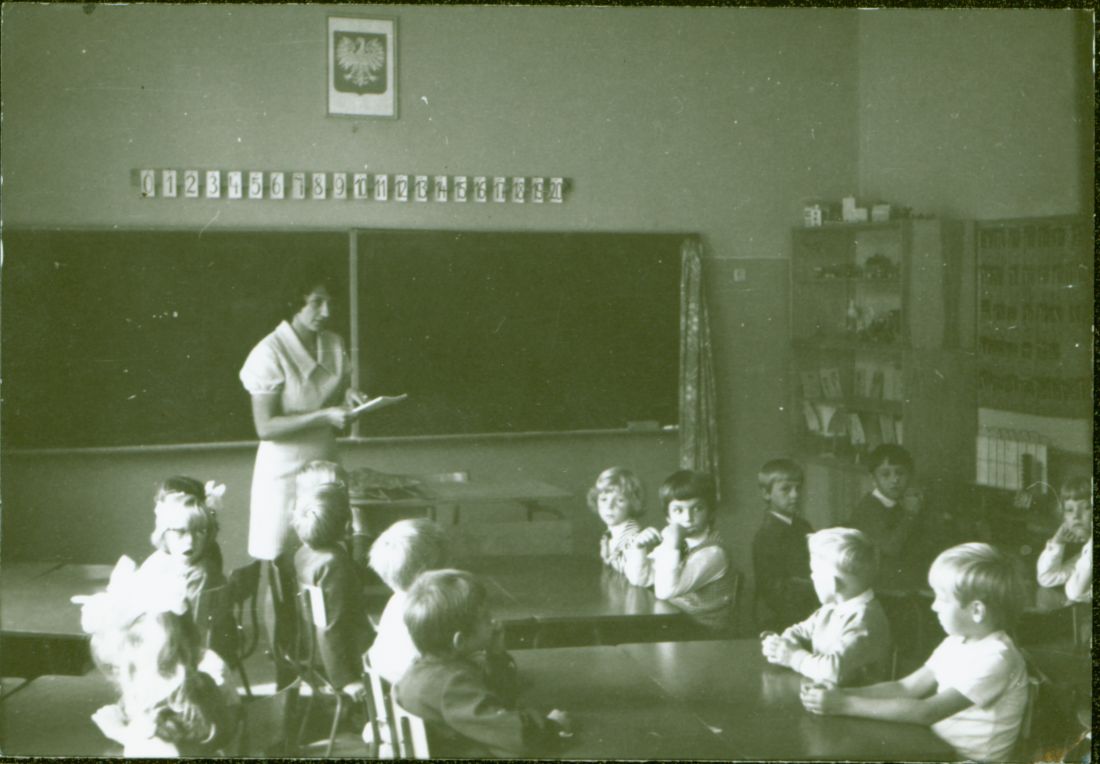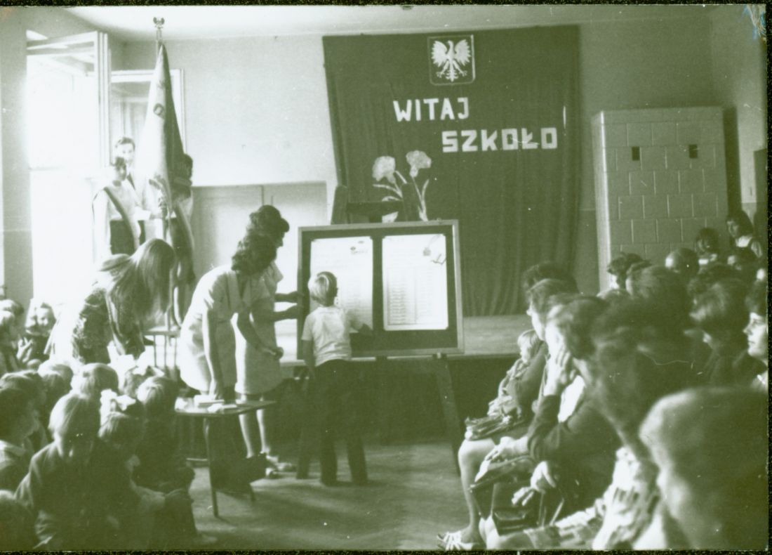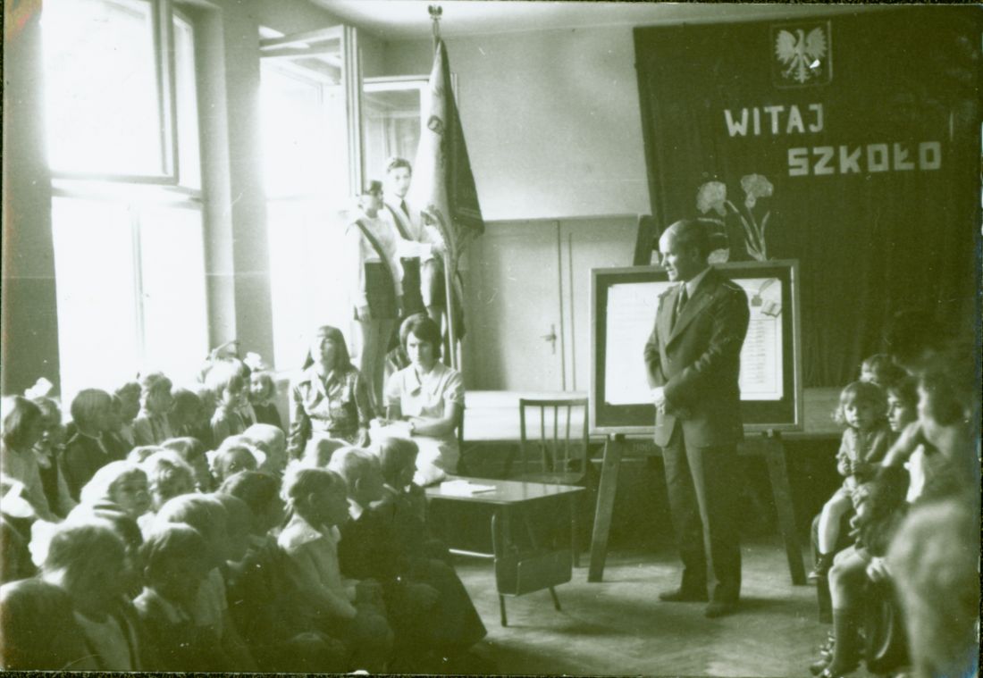 Pierwszoklasiści 2.9.1974. Przy tablicy Szymon