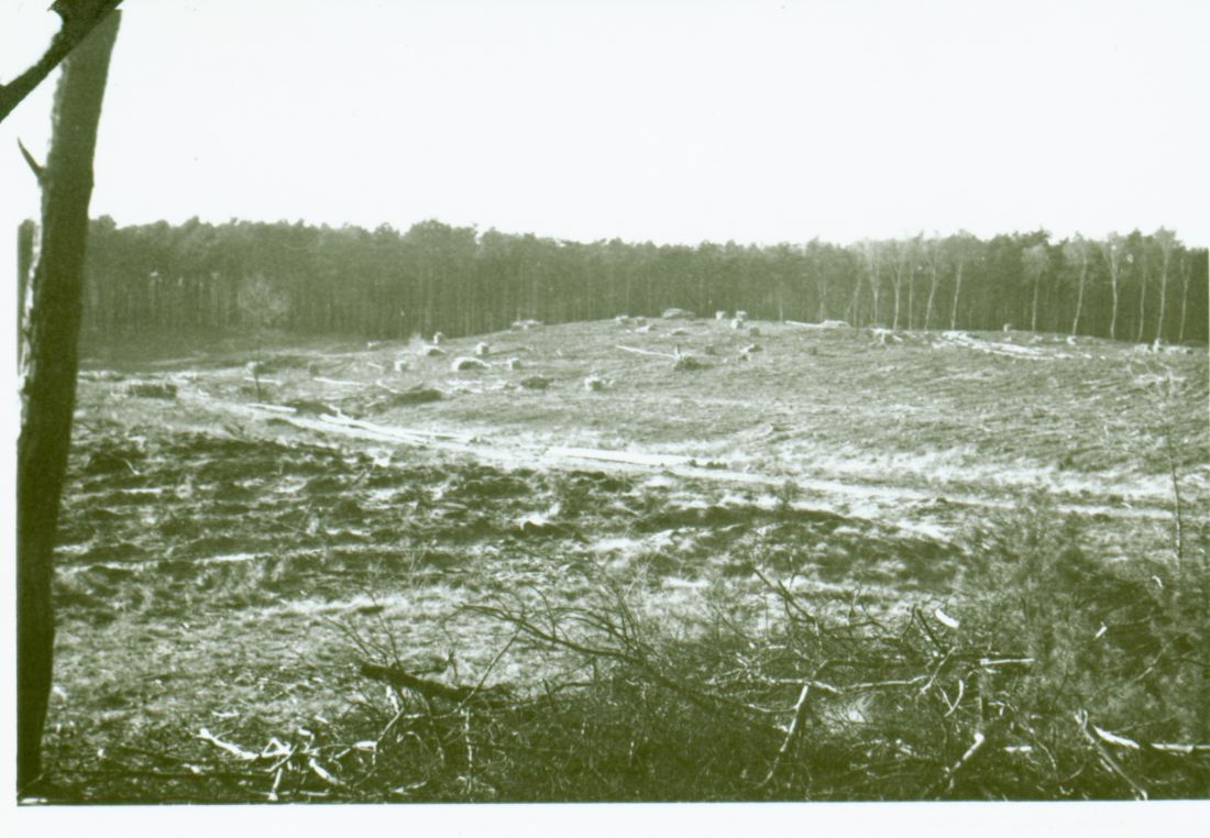 Widok z wieży triangulacyjnej na piaskach na Siejewo i Zduny kwiecień 1976