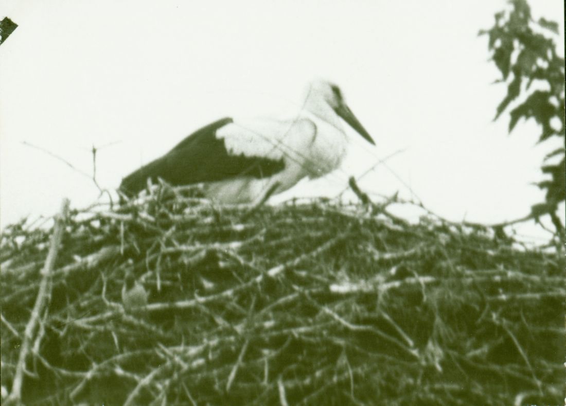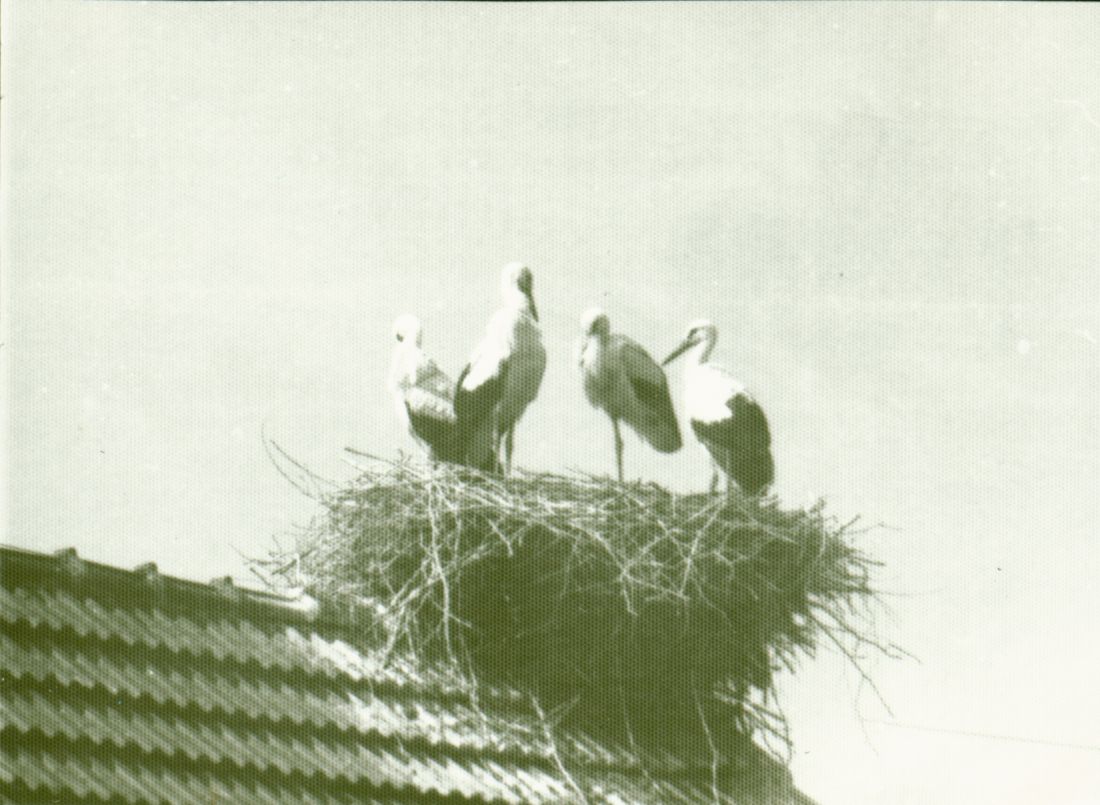 Baszków lipiec 1978 cztery młode bociany