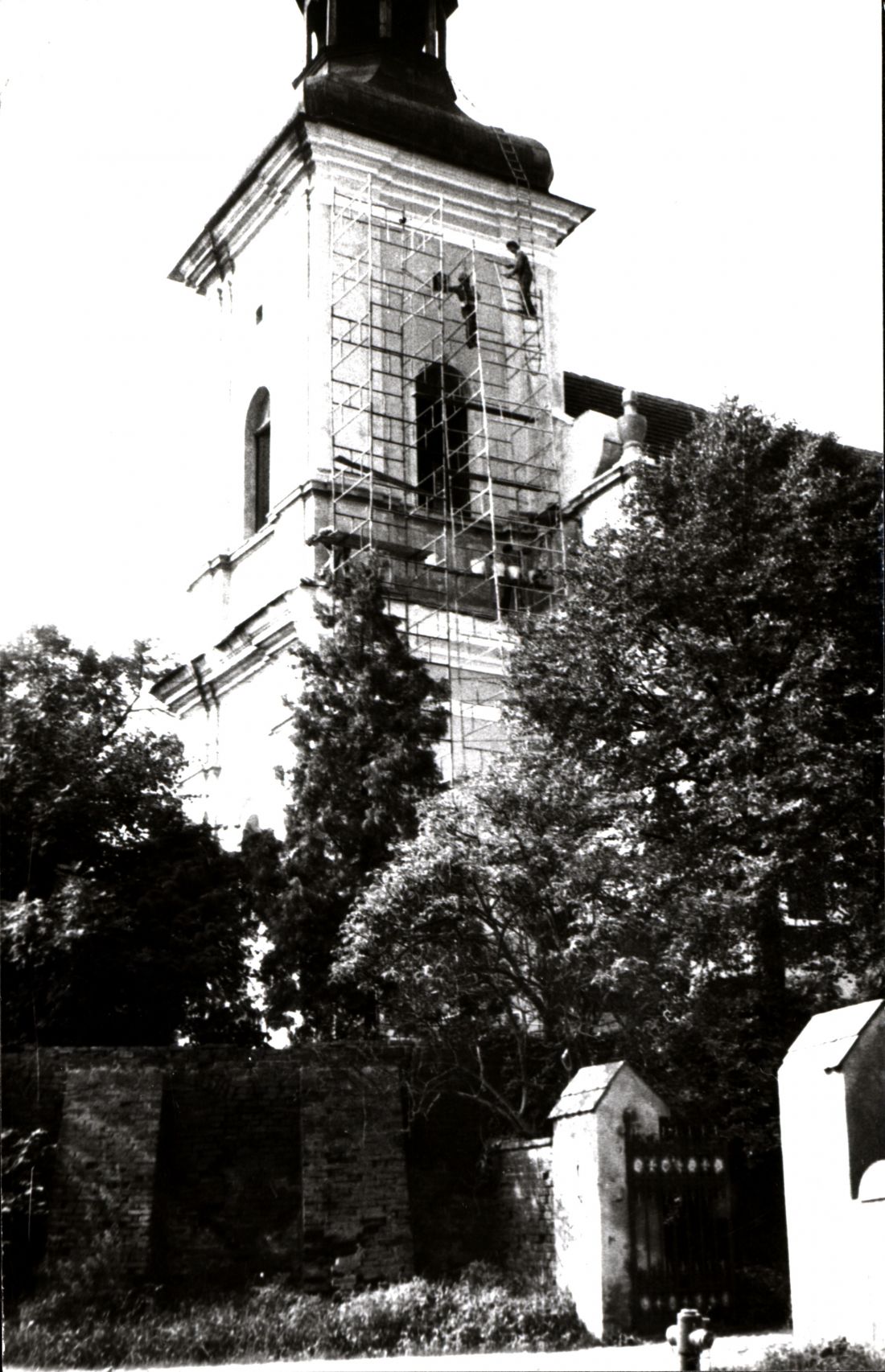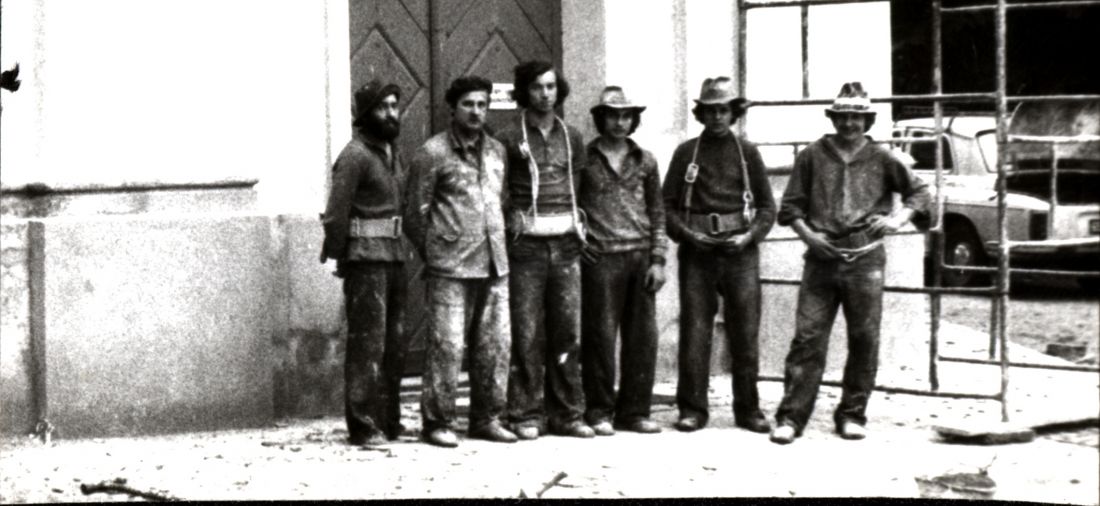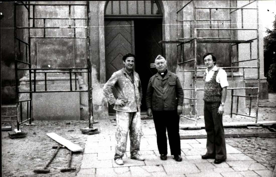 Malowanie kościoła parafialnego sierpień-wrzesień 1977 mistrz malarski Zakowicz z 5 malarzami