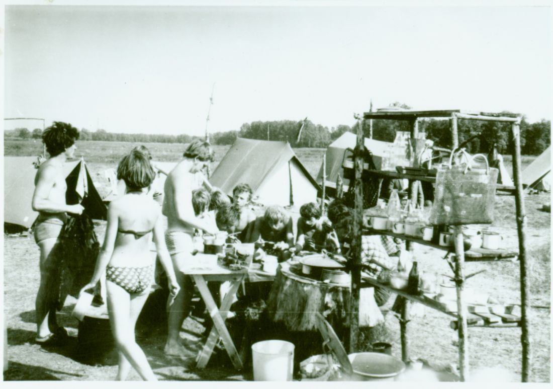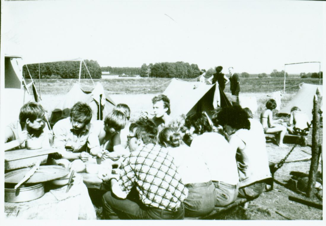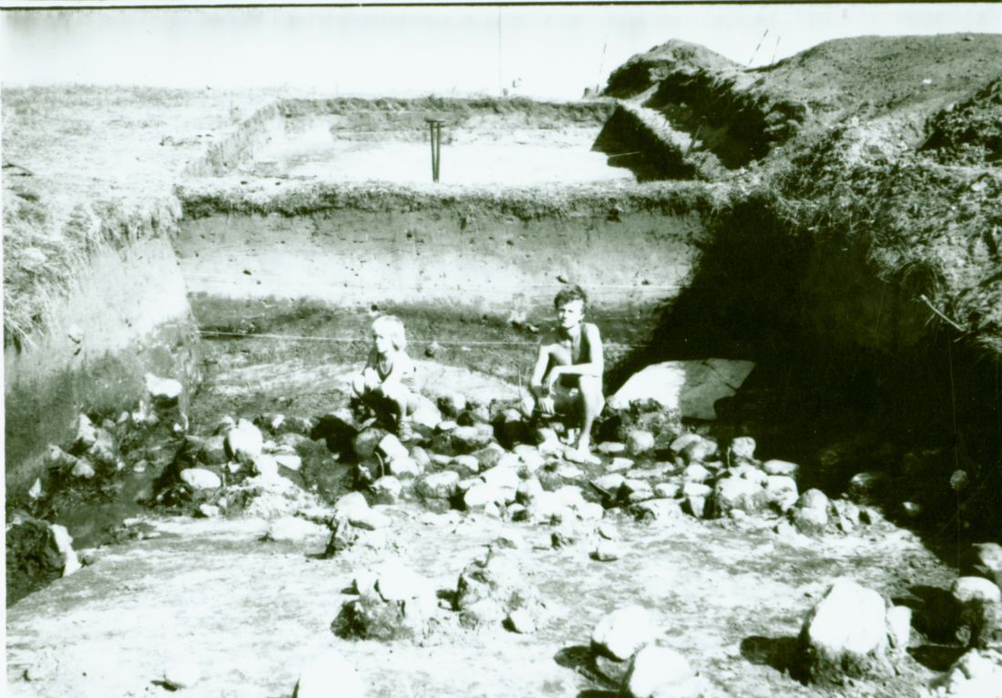 Wykopaliska archeologiczne Piaski lipiec sierpień 1978 mgr historii i archeologii Kosiński z uczniami LO Kołłątaja w Krotoszynie