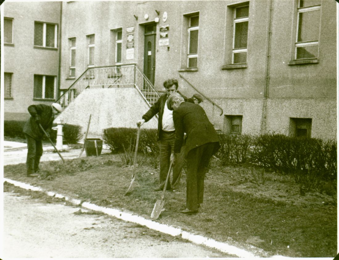 Czyny społeczne w Zdunach kwiecien 1984 Na zdjęciu były prezes GS Zduny Roman Pfloegel