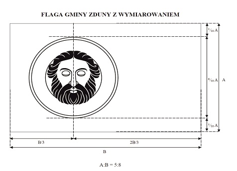 Wzór FLAGI określa załącznik nr 2 do Uchwały nr XIV.121.2025 Rady Miejskiej w Zdunach z dnia 30 kwietnia 2025 r. w sprawie ustanowienia herbu, flagi, pieczęci, banneru i flagi stolikowej Gminy Zduny oraz zasad ich używania (Dziennik Urzędu Województwa Wielkopolskiego poz. 4241 z 2025 roku).