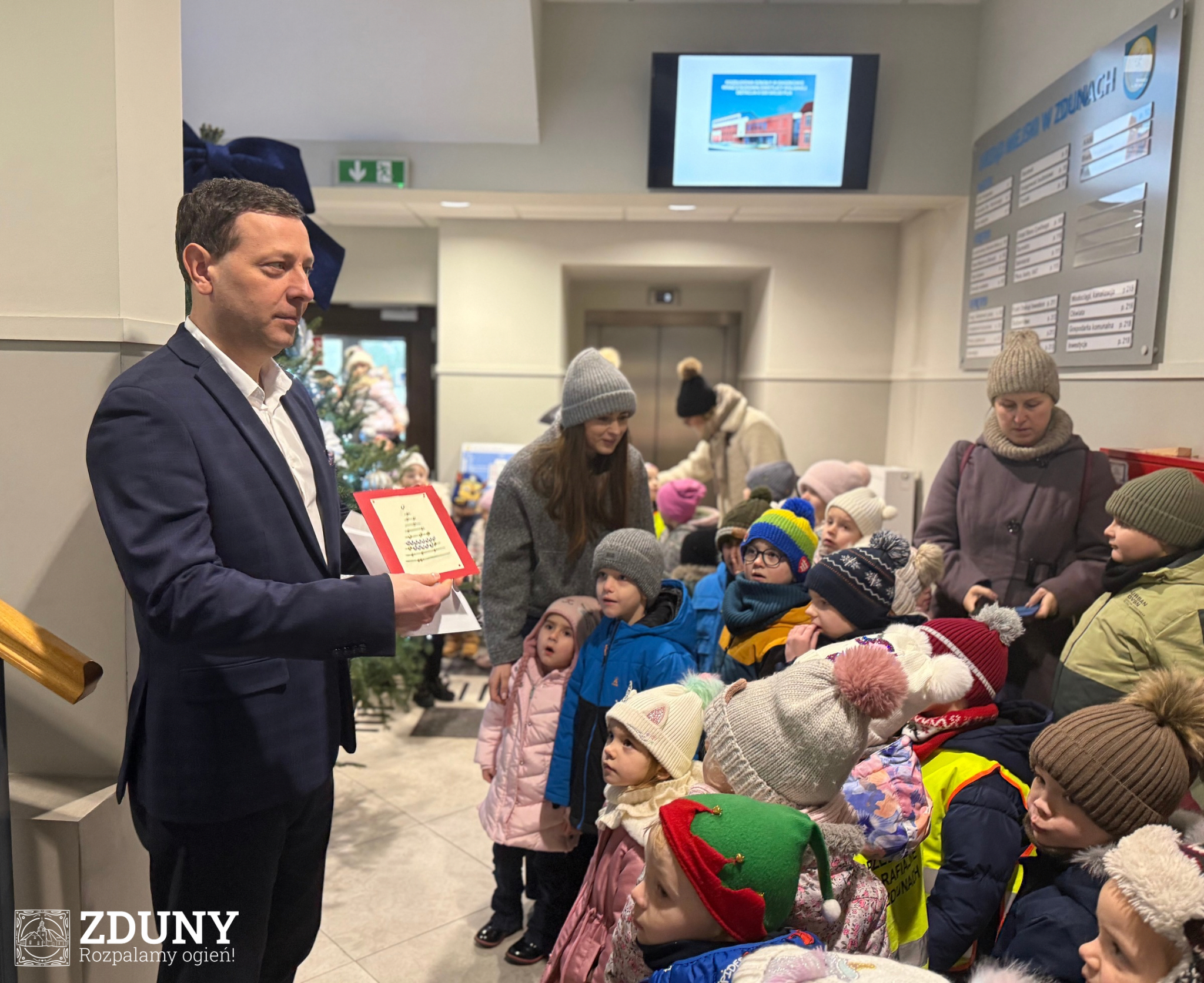 W dniu 15 grudnia 2025 r. Urząd Miejski w Zdunach gościł przedszkolaki z Publicznego Przedszkola w Zdunach, Niepublicznego Przedszkola Parafialnego oraz uczniów Szkoły Podstawowej w Zdunach wraz z nauczycielkami.