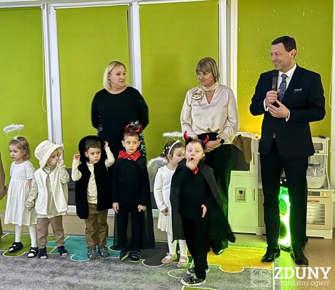 Wśród zaproszonych gości obecny był Burmistrz Zdun Miłosz Zwierzyk, który z uwagą obejrzał przedstawienie. Po jego zakończeniu podziękował dzieciom za piękny występ, a nauczycielom i pracownikom przedszkola za trud włożony w przygotowanie Jasełek. Na zakończenie skierował do wszystkich zgromadzonych ciepłe, świąteczne życzenia, dziękując za wspólnie spędzony czas.
