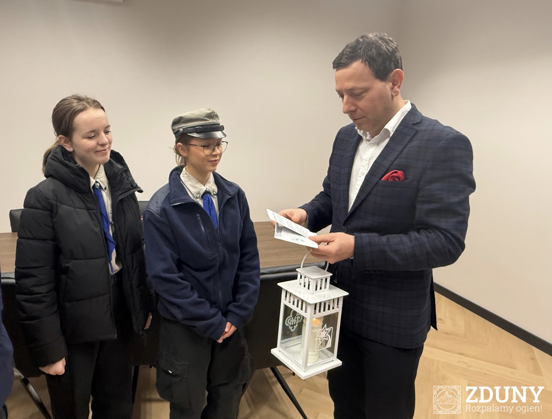 Burmistrz Zdun podziękował harcerzom za przybycie oraz zaangażowanie w podtrzymywanie tej pięknej tradycji. Po wizycie w urzędzie druhowie wyruszyli dalej, by przekazać Betlejemskie Światło Pokoju kolejnym instytucjom na terenie gminy Zduny.