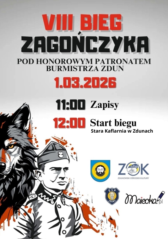 Burmistrz Zdun oraz Zdunowski Ośrodek Kultury zapraszają do udziału w VIII Biegu Zagończyka, który odbędzie się 1 marca br. o godz. 12:00. To wyjątkowe wydarzenie sportowe łączy pasję do biegania z historią i lokalną tradycją.