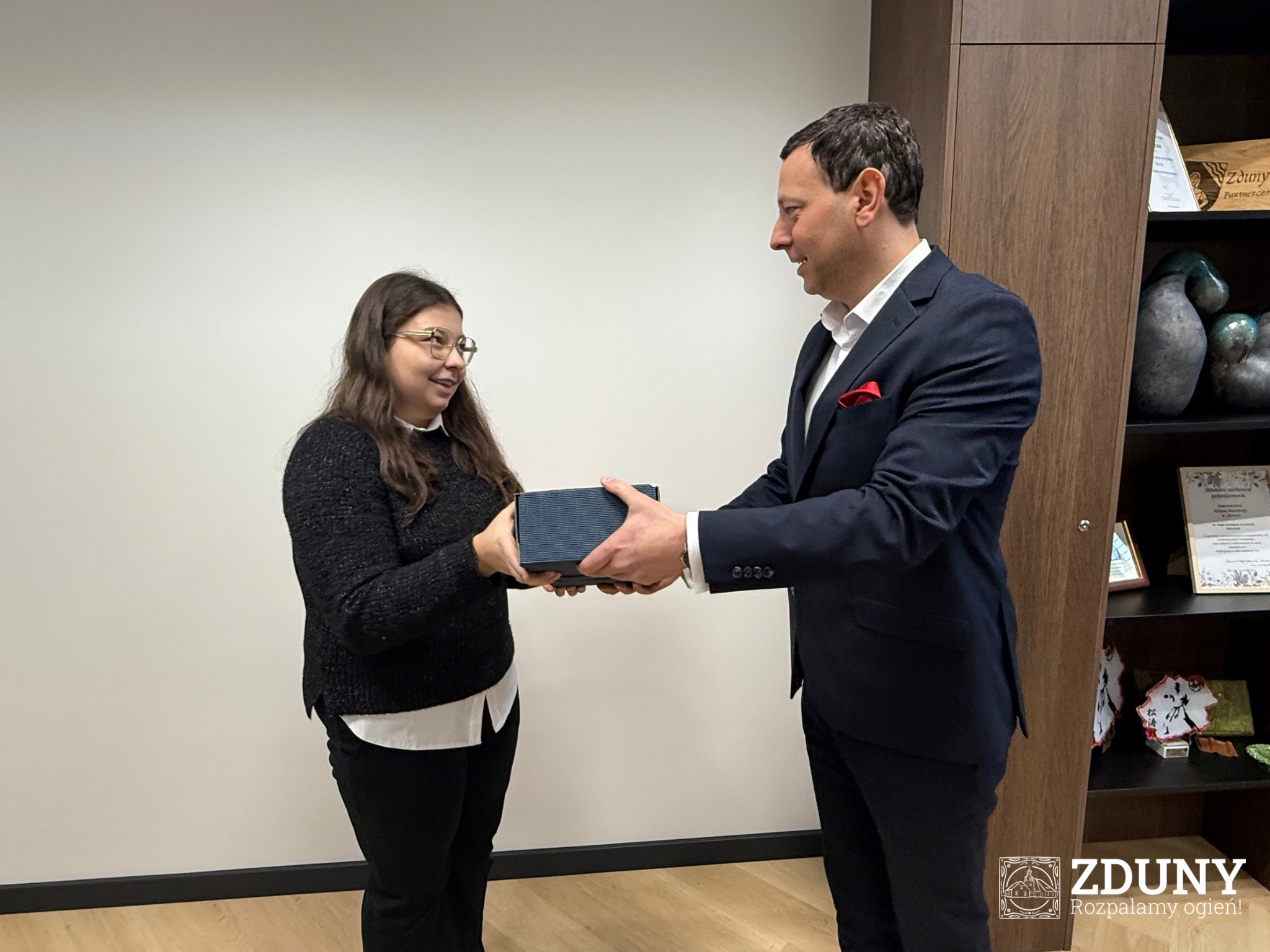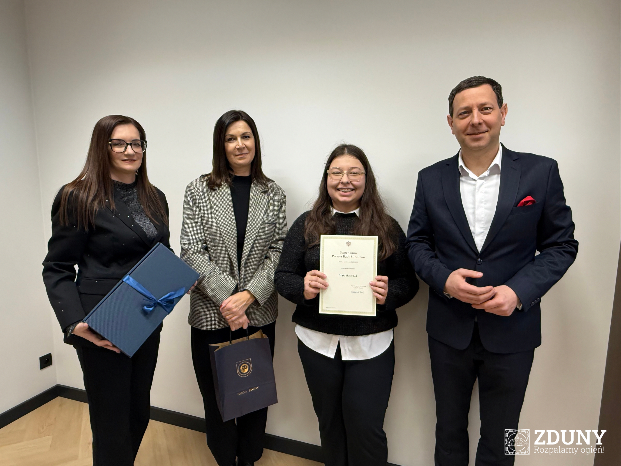 Z tej okazji Burmistrz Zdun Miłosz Zwierzyk wraz z Zastępcą Burmistrza Anną Pietrzak-Figlak złożyli serdeczne gratulacje stypendystce oraz Pani Renacie Błażejczyk, zastępującej dyrektora ZSP w Zdunach.