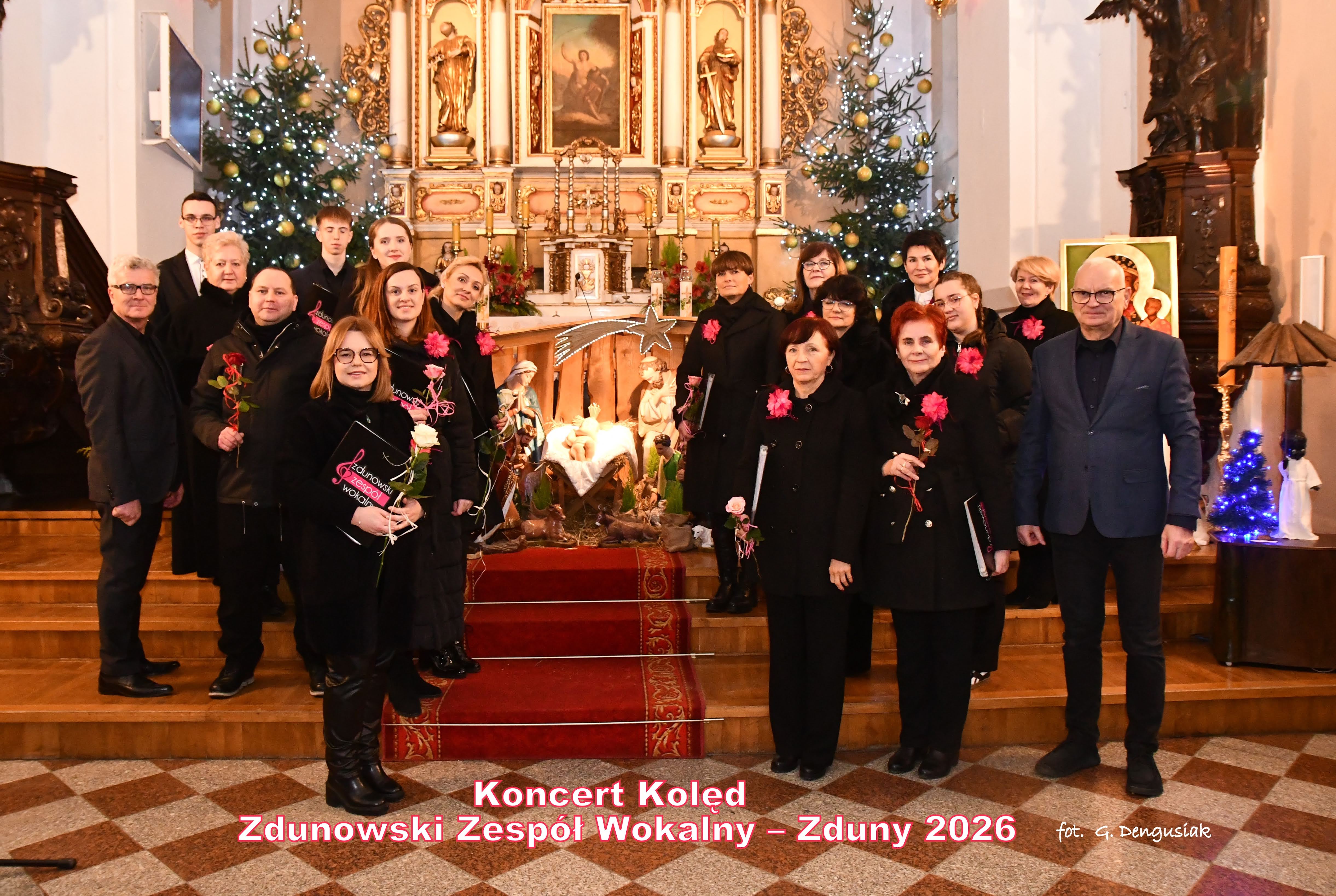 W dniu 18 stycznia 2026 r. w kościele parafialnym w Zdunach odbył się koncert kolęd w wykonaniu Zdunowskiego Zespołu Wokalnego. Pod przewodnictwem Pana Adama Szczuraszka artyści zaprezentowali bogaty i pięknie wykonany repertuar tradycyjnych kolęd oraz pastorałek. Koncert był muzycznym zwieńczeniem okresu bożonarodzeniowego, domykając świąteczny czas wspólnego kolędowania i refleksji.